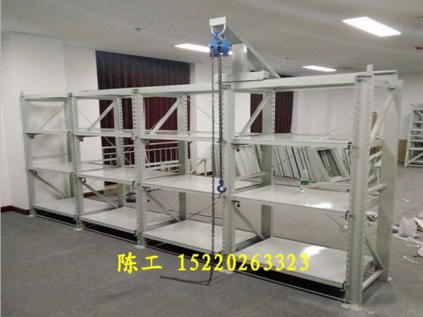抽屜式模具架又稱模具貨架。主要用于存放各種模具物品;頂部可配置移動葫蘆車(手拉或電動),抽屜底部設(shè)有滾輪軌道,承載后依然能用很小的力自如地拉動,附加定位保險裝置,安全可靠;根據(jù)承載能力可分為輕量型、中量型和重量型三種。操作輕便:采用軸承組合,滑動平移并附有獨(dú)立吊模裝置,無需大型行車及叉車。