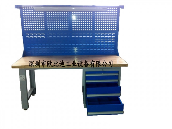 歐比迪工作臺工作桌技術參數(shù):1200*750/1500*750/1800*750/2000*1000*800MM:可按用戶要求定做其規(guī)格尺寸。桌面材質:臺面采用1.0/1.2/1.5/2.0/MM不銹鋼包30/47MM厚高密度板,根據(jù)用戶工作需求選擇不同桌面;工作臺桌面可選擇特殊成型高分子纖維板等不同材質、不同厚度的基材,歐比迪基本桌面:高分子復合桌面、防火板桌面不銹鋼包面、櫸木桌面、橡木層壓板左面、防靜電桌面、電木板帖面等,鐵板合成面、不銹鋼包臺面、鋼板臺面、 鑄鐵臺面。詳情請參考歐比迪工作桌選配表。歐比迪工作臺整體框架:采用優(yōu)質鋼板2.0mm厚的專用模具及鯤扎工藝制作成型,桌腿截面100*50*2.0MM橫梁截面80*50*2.0MM,整體可承重3000KG,根據(jù)用戶的承載要求,可選擇不同形狀的桌腳。桌上配置:照明架/吊架/擱板/方孔掛板/百葉掛板/擋板/擱物架/動力電源插座/電器盒/零件盒掛條等,滿足用戶不同的需求。詳情請參考工作桌掛板表。歐比迪鉗工桌表面處理:通過先進的自動化靜電噴涂工藝進行表面處理。顏色自定。自定選配:桌下可選配抽屜、吊柜、落地柜、組合柜、單開門柜、雙開門柜,滿足用戶裝載物品的需求??赏耆凑漳韫の环菢嗽O計生產制造!各種類型的工作桌均采用組合式設計、拆裝組合容易且穩(wěn)固、耐用。廣泛適用:模具廠,組裝廠,電子廠,機械廠,實驗室,測試單位,食品廠,塑膠廠,鋼木等及其他類型工廠使用。為鉗工、模具、裝配、包裝、檢測、維修等各種生產工作而專門設計。歐比迪供應工作臺|鉗工臺|工具柜|刀具柜|刀具架|模具架|登高梯|模具吊架|倉儲貨架|鑄鐵平臺|大理石平臺|安全柜|零件柜|文件柜