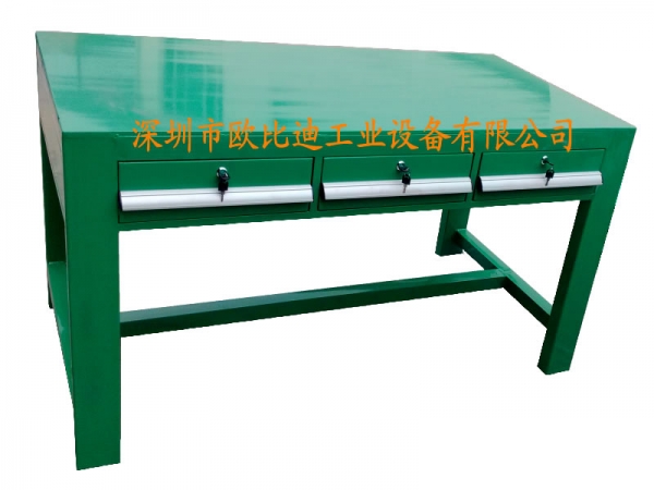 歐比迪工作臺(tái)桌面材質(zhì):臺(tái)面采用30/50MM厚灰白色防火板材料,耐磨、防火?;宀捎酶呃w維板,四周使用高強(qiáng)度塑膠包邊不易受撞擊損壞。歐比迪鉗工桌基本桌面:高分子復(fù)合桌面、防火板桌面、櫸木桌面、橡木層壓板左面、防靜電桌面、電木板帖面等,鐵板合成面、不銹鋼包臺(tái)面、鋼板臺(tái)面、鑄鐵臺(tái)面。詳情請(qǐng)參考工作桌選配表。歐比迪模具臺(tái)整體框架:采用優(yōu)質(zhì)鋼板2.0mm厚的專用模具及鯤扎工藝制作成型,桌腿截面100*50*2.0MM橫梁截面80*50*2.0MM,整體可承重1000KG,根據(jù)用戶的承載要求,可選擇不同形狀的桌腳。工作臺(tái)桌上配置:照明架、吊架、擱板、方孔掛板、百葉掛板、動(dòng)力電源插座、電器盒、零件盒掛條等,滿足用戶不同的需求。詳情請(qǐng)參考工作桌掛板表。鉗工臺(tái)桌下配置:吊柜、開(kāi)門柜、落地柜、抽屜柜、組合柜、雙開(kāi)門柜等形式,根據(jù)需求訂做;表面處理:通過(guò)先進(jìn)的自動(dòng)化靜電噴涂工藝進(jìn)行表面處理。顏色自定。自訂選配:桌下可選配各種類型的工具柜,滿足用戶裝載物品的需求??赏耆凑漳韫の环菢?biāo)設(shè)計(jì)生產(chǎn)制造!各種類型的工作桌均采用組合式設(shè)計(jì)、拆裝組合容易且穩(wěn)固、耐用。廣泛適用:模具廠,組裝廠,電子廠,機(jī)械廠,實(shí)驗(yàn)室,測(cè)試單位,食品廠,塑膠廠,鋼木等及其他類型工廠使用。為鉗工、模具、裝配、包裝、檢測(cè)、維修等各種生產(chǎn)工作而專門設(shè)計(jì)。適合鉗工工作。廣泛適用:模具廠,組裝廠,電子廠,機(jī)械廠,實(shí)驗(yàn)室,測(cè)試單位,食品廠,塑膠廠,鋼木等及其他類型工廠使用。為鉗工、模具、裝配、包裝、檢測(cè)、維修等各種生產(chǎn)工作而專門設(shè)計(jì)。歐比迪供應(yīng)修模工作臺(tái)、模具修模工作臺(tái)、鋼板修模工作臺(tái)、鐵制修模工作臺(tái)、不銹鋼桌面修模工作臺(tái)、櫸木桌面修模工作臺(tái)、制模修模工作臺(tái)、重型修模工作臺(tái)、鉗工修模工作臺(tái)、定制修模工作臺(tái)