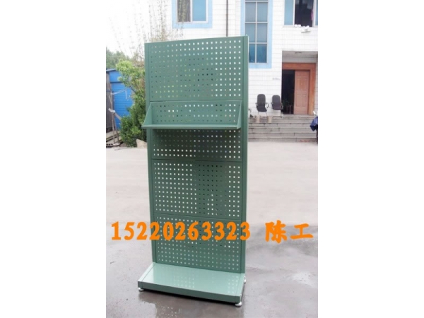 1.由掛板(方孔或百葉)、背掛零件盒、各類(lèi)物料掛鉤、底座及立柱組合而成。