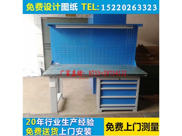 歐比迪鉗工桌技術(shù)參數(shù):1200*750/1500*750/1800*750/2000*1000*800MM:可按用戶要求定做其規(guī)格尺寸。桌面材質(zhì):臺面采用1.0/1.2/1.5/2.0/MM不銹鋼包30/47MM厚高密度板,根據(jù)用戶工作需求選擇不同桌面;工作臺桌面可選擇特殊成型高分子纖維板等不同材質(zhì)、不同厚度的基材,歐比迪基本桌面:高分子復(fù)合桌面、防火板桌面不銹鋼包面、櫸木桌面、橡木層壓板左面、防靜電桌面、電木板帖面等,鐵板合成面、不銹鋼包臺面、鋼板臺面、 鑄鐵臺面。詳情請參考?xì)W比迪工作桌選配表。歐比迪工作臺整體框架:采用優(yōu)質(zhì)鋼板2.0mm厚的專用模具及鯤扎工藝制作成型,桌腿截面100*50*2.0MM橫梁截面80*50*2.0MM,整體可承重3000KG,根據(jù)用戶的承載要求,可選擇不同形狀的桌腳。桌上配置:照明架/吊架/擱板/方孔掛板/百葉掛板/擋板/擱物架/動力電源插座/電器盒/零件盒掛條等,滿足用戶不同的需求。詳情請參考工作桌掛板表。歐比迪鉗工桌表面處理:通過先進(jìn)的自動化靜電噴涂工藝進(jìn)行表面處理。顏色自定。自定選配:桌下可選配抽屜、吊柜、落地柜、組合柜、單開門柜、雙開門柜,滿足用戶裝載物品的需求??赏耆凑漳韫の环菢?biāo)設(shè)計生產(chǎn)制造!各種類型的工作桌均采用組合式設(shè)計、拆裝組合容易且穩(wěn)固、耐用。廣泛適用:模具廠,組裝廠,電子廠,機械廠,實驗室,測試單位,食品廠,塑膠廠,鋼木等及其他類型工廠使用。為鉗工、模具、裝配、包裝、檢測、維修等各種生產(chǎn)工作而專門設(shè)計。歐比迪供應(yīng)修模工作臺、模具修模工作臺、鋼板修模工作臺、鐵制修模工作臺、不銹鋼桌面修模工作臺、櫸木桌面修模工作臺、制模修模工作臺、重型修模工作臺、鉗工修模工作臺、定制修模工作臺
